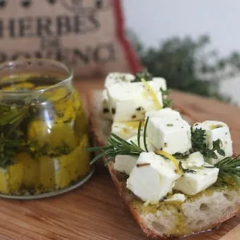 Experience the tantalizing flavors of our Pickled Feta, a 200g jar of artisanal cheese that will surely elevate your taste buds. Our feta is carefully pickled in olive oil, herbs and garlic, resulting in a tangy and flavorful treat that pairs perfectly with crackers, bread, or as a topping on salads and sandwiches. The leftover flavored oil is a versatile addition to your kitchen, perfect for drizzling over salads or using as a marinade for grilled vegetables or meats. Made with the highest quality ingredients, our Pickled Feta is a must-have for any cheese connoisseur looking for a unique and delicious addition to their collection. Add a jar of our Pickled Feta to your order today and experience the delectable combination of tangy, pickled cheese and savory, herb-infused oil.